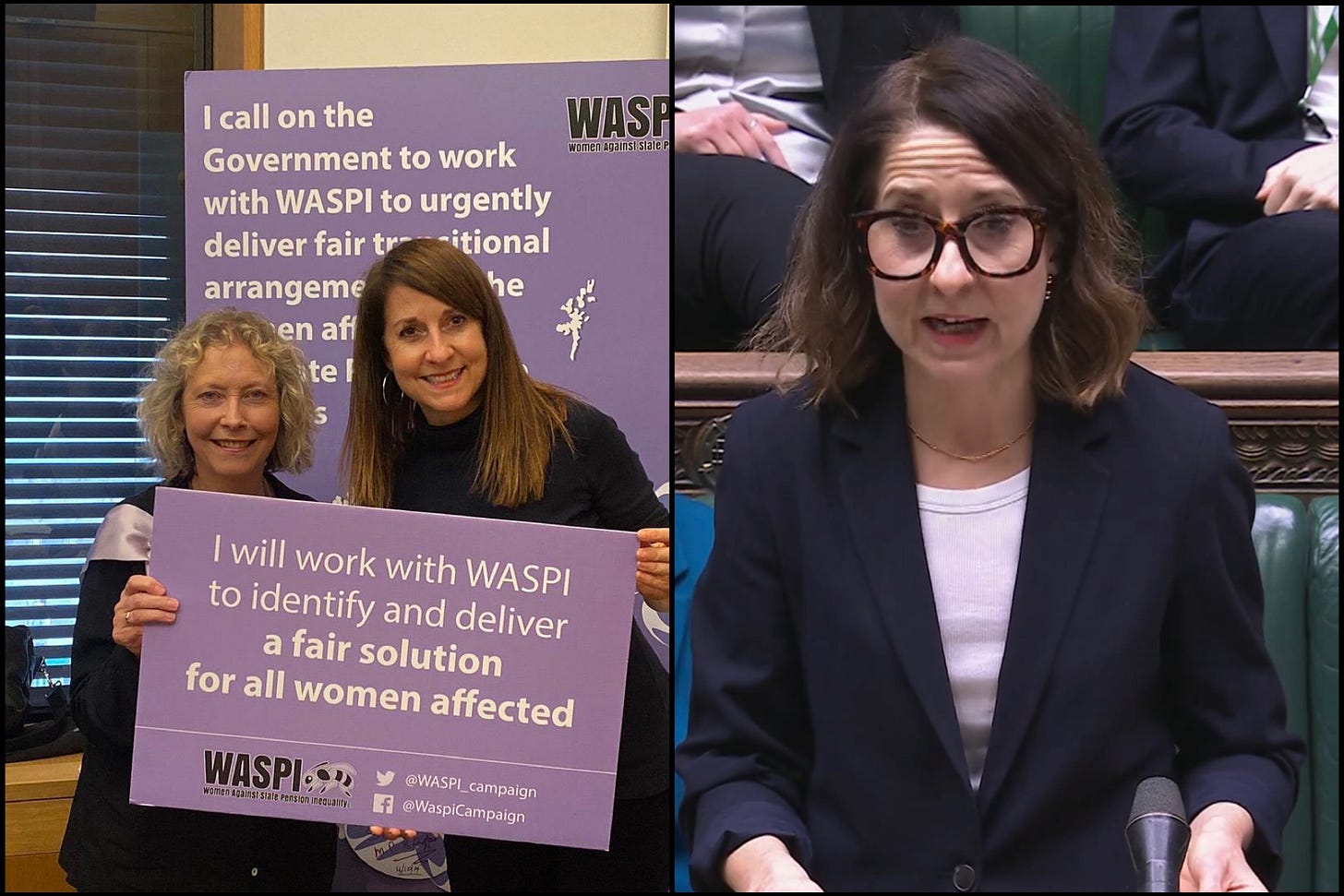 L: Liz Kendall MP with WASPI campaigners in October 2019 R: Liz Kendall as Secretary of State for Work and Pensions making her statement on WASPI compensation in the House of Commons on 17 December 2024